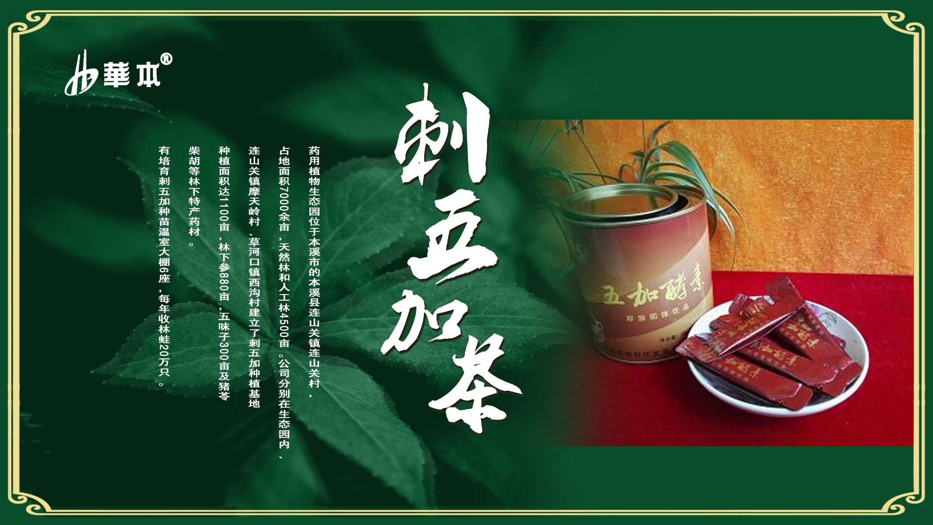 近年來(lái)公司分別被本溪市政府評(píng)為“重合同守信用”企業(yè)和“農(nóng)業(yè)產(chǎn)業(yè)龍頭化企業(yè)”、“遼寧省林業(yè)產(chǎn)業(yè)龍頭化企業(yè)”。公司的刺五加保健茶自2010年連續(xù)六年獲得“國(guó)家有機(jī)食品認(rèn)證”及“國(guó)家綠色食品AA級(jí)標(biāo)準(zhǔn)認(rèn)證”,“華本”商標(biāo)獲得市重點(diǎn)商標(biāo)。